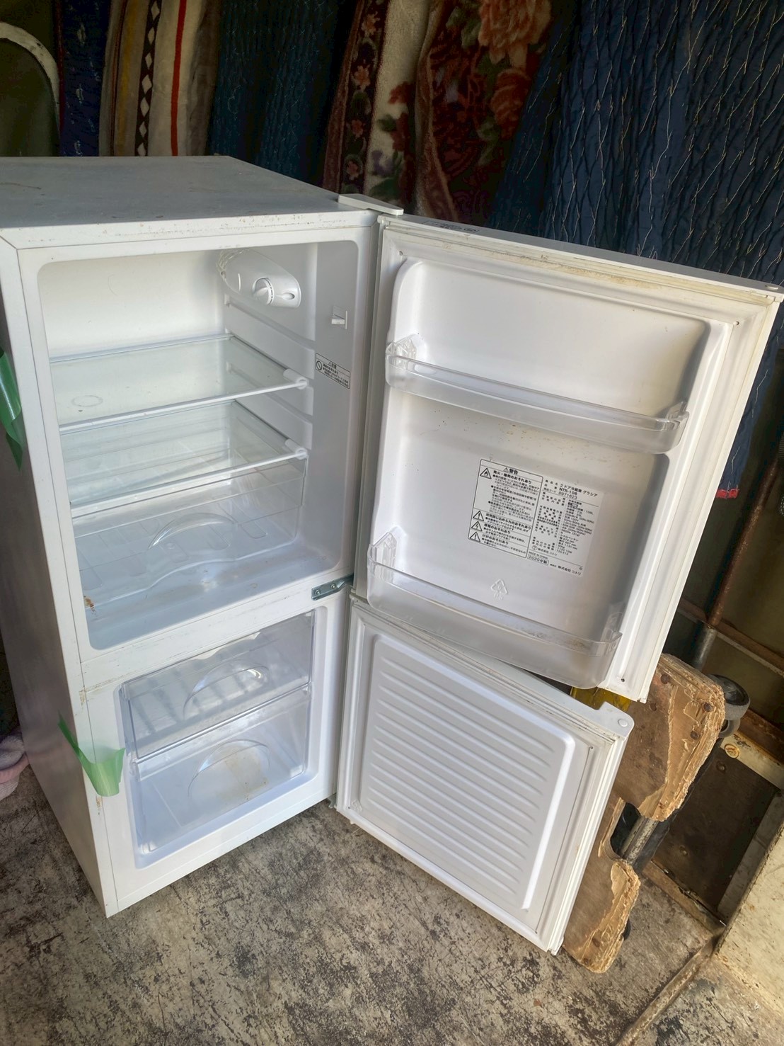 ご依頼いただいた冷蔵庫は、単身用として人気の高い106Lタイプのコンパクトモデルです。外装には細かな擦れや汚れ、テープ跡が見受けられました。また庫内についても通常使用に伴う汚れが一部確認できましたが、棚パーツやドアポケットはしっかり揃っており、冷却動作や通電は問題なく確認できました。大きな破損や割れなどはなく、日常使用には支障のない状態でした。