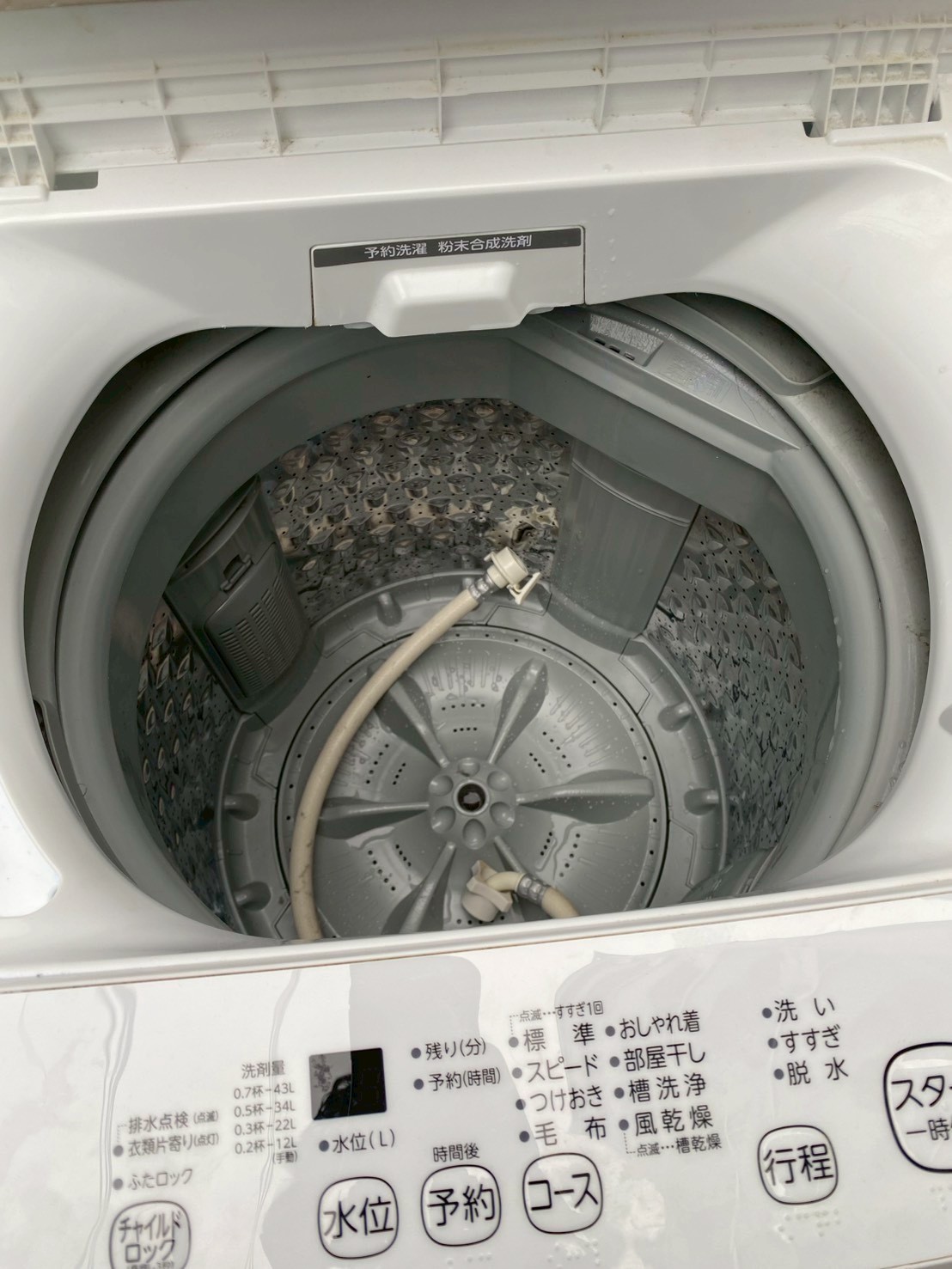 お引き取りした商品は、外観に目立つへこみや大きな傷はなく、全体的に清潔感のある状態でした。洗濯槽内部にも強い汚れは見られず、動作確認においても給水・洗い・脱水まで問題なく稼働を確認しています。使用年数が比較的浅い2022年製という点も、査定において評価ポイントとなりました。