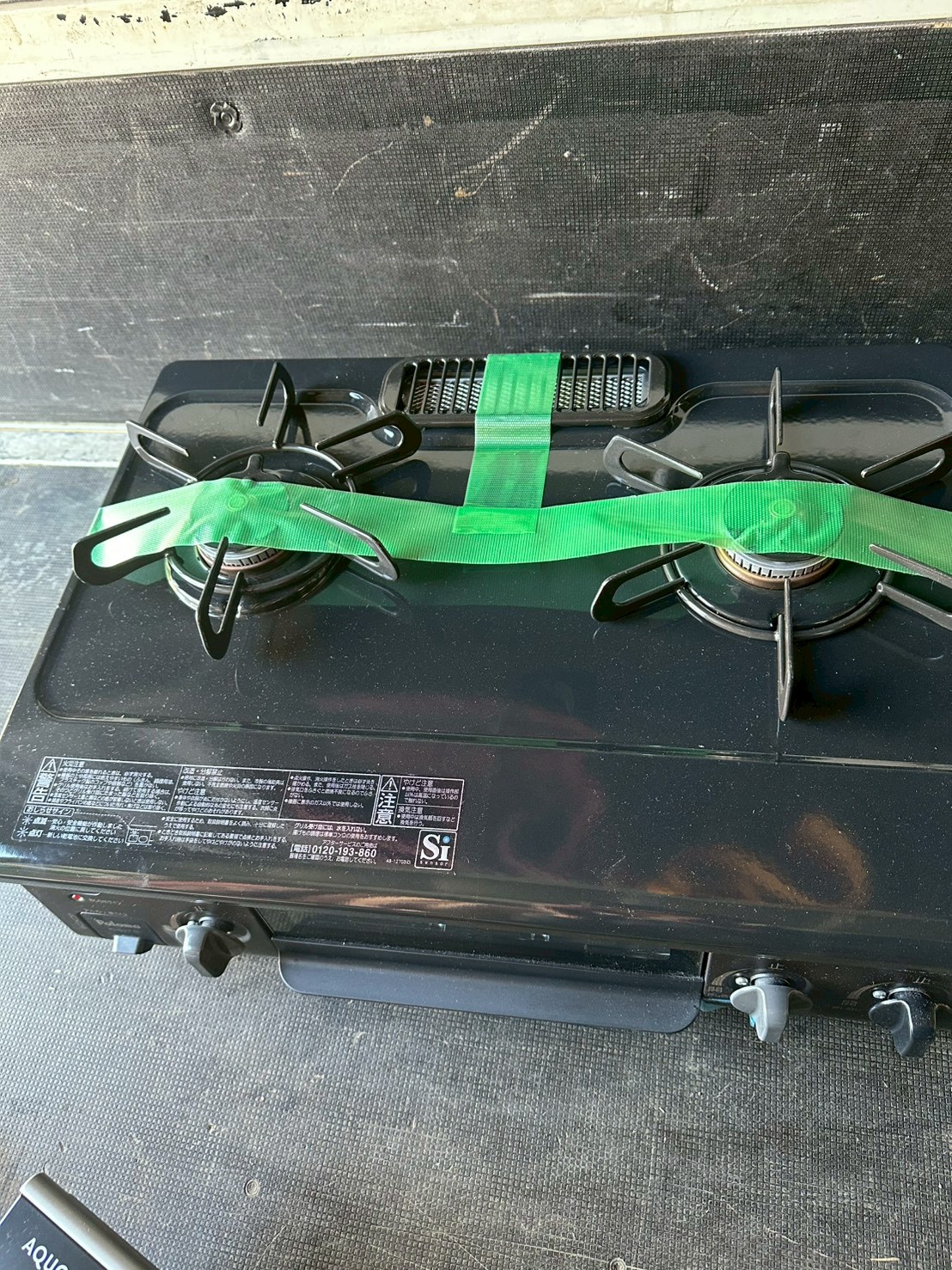 お預かりしたガスコンロは外装に軽い擦れや細かな汚れが見られましたが、五徳やバーナー周辺の状態は比較的良好で、グリル内部は目立つ焦げ付きが少ない清潔な状態でした。点火動作も問題なく、安全機能付きモデルのため中古市場でも一定の需要がある製品です。