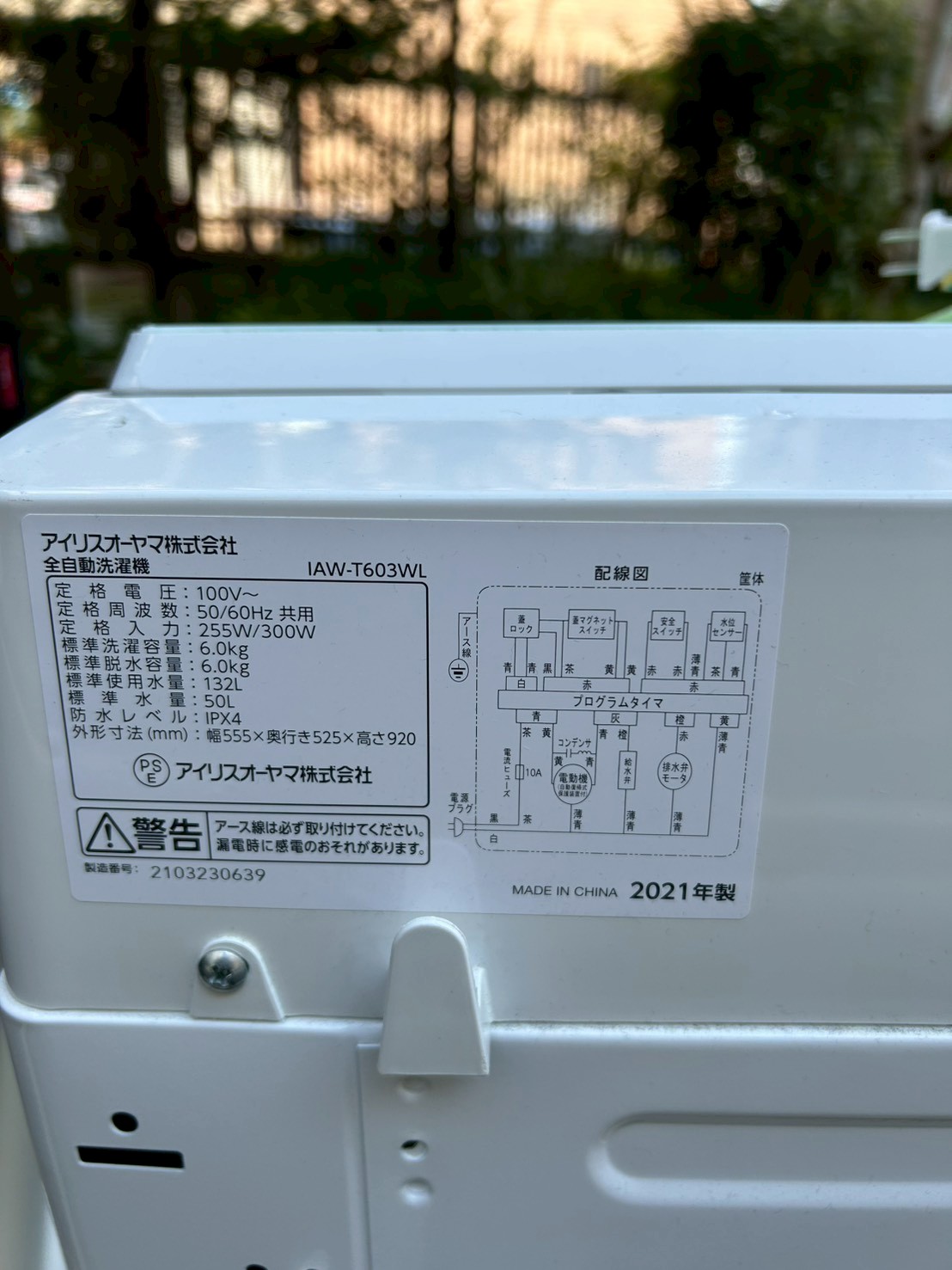 埼玉県三郷市へ出張買取 アイリスオーヤマ IAW-T603WL 2021年製 全自動洗濯機 買取査定
