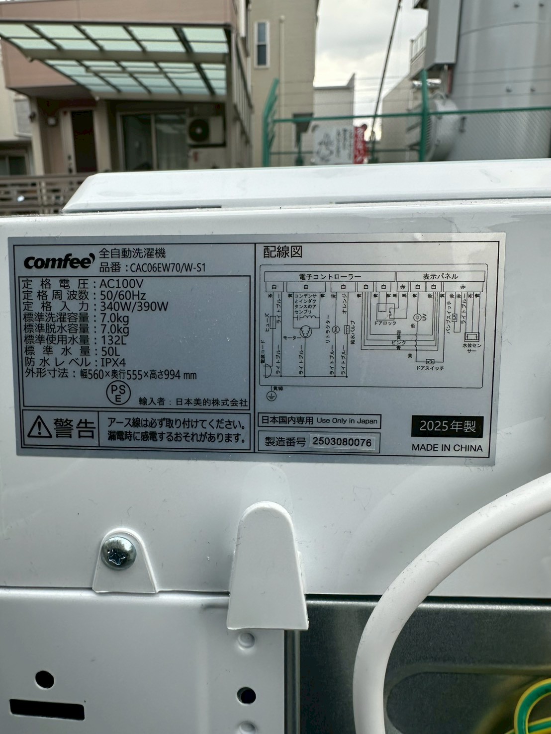 今回は川越市にお住まいの20代男性(会社員・単身・賃貸アパート)より、comfee 全自動洗濯機 CAC06EW70/W-S1(2025年製・7.0kg)を不用品買取にてご依頼いただきました。