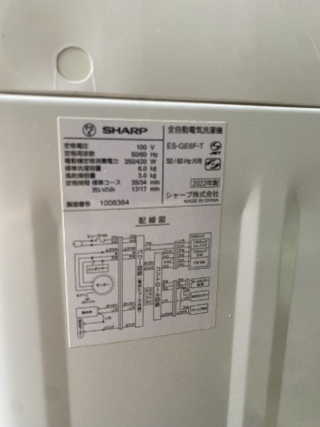埼玉県朝霞市へ出張買取 SHARP ES-GE6F-T 2022年製 6.0kg 全自動洗濯機 使用感ありのため適正価格で査定しました