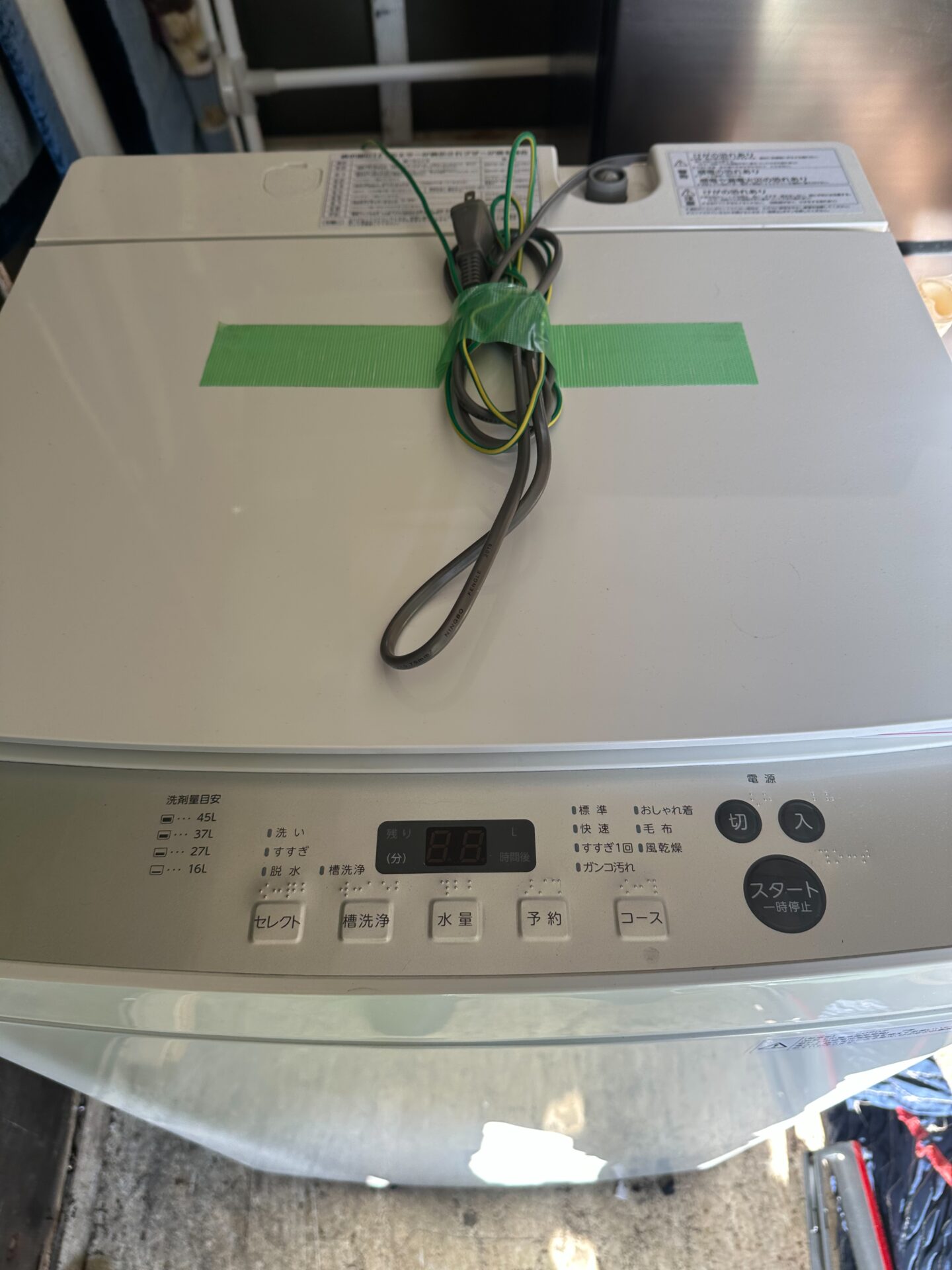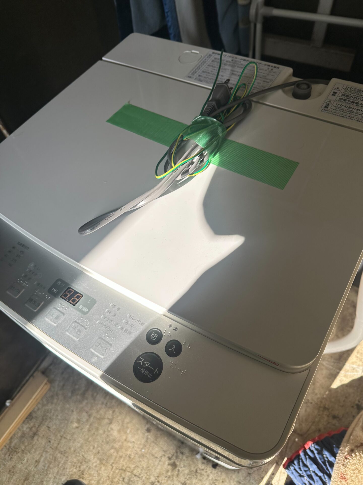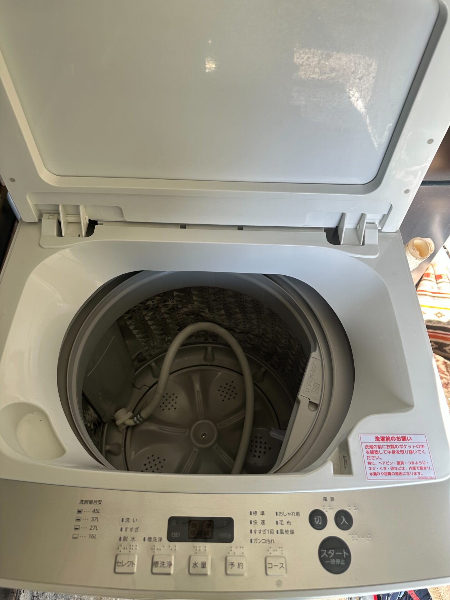 お預かりした洗濯機は、外装に軽微な擦り傷や使用に伴う汚れが見受けられる状態でしたが、全体としては比較的きれいな印象です。槽内も大きな汚れはなく、洗濯槽の回転や給水・排水動作も問題なく確認できました。付属の給水ホースも揃っており、すぐに使用可能なコンディションでした。