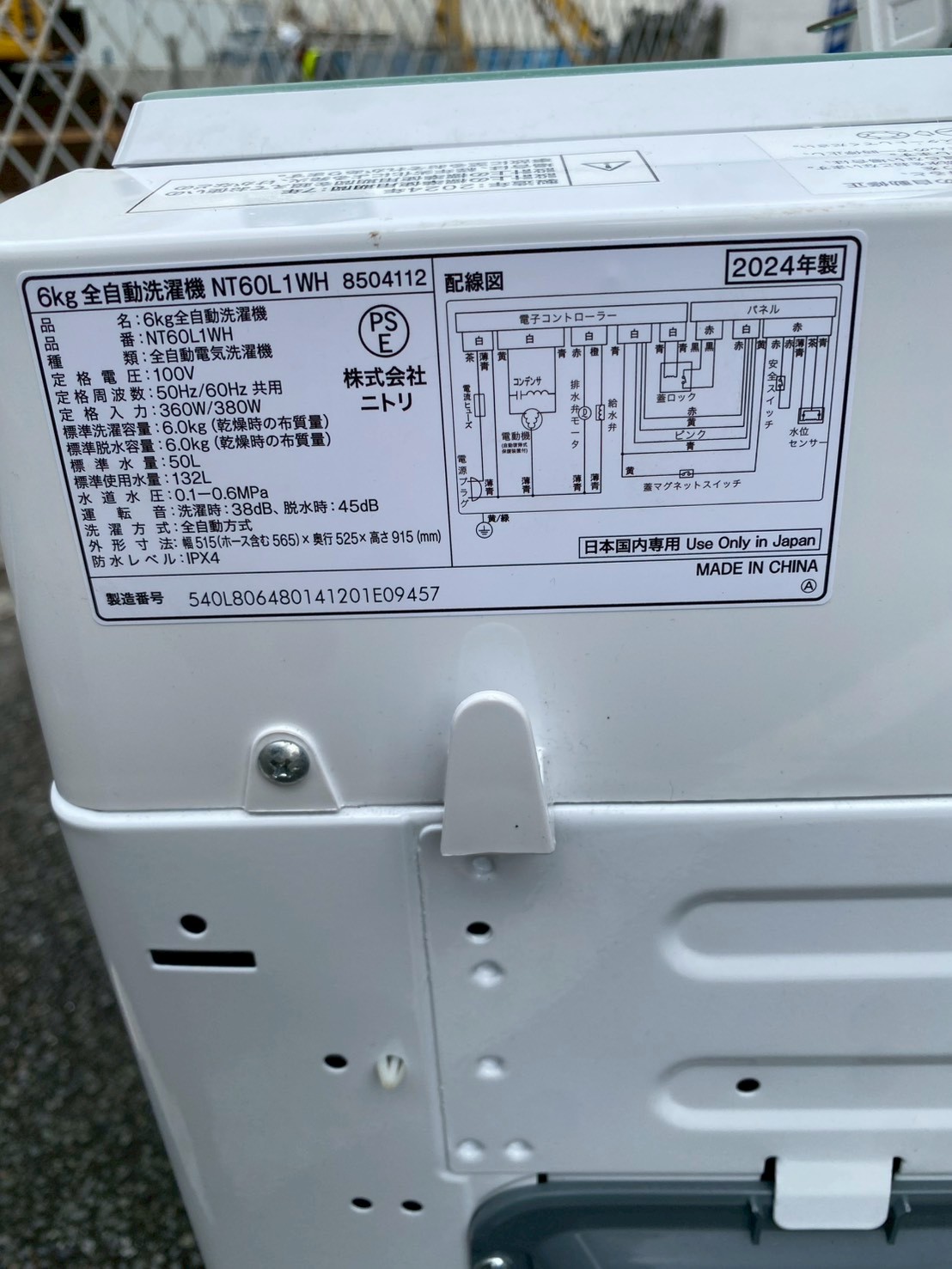 今回は川口市にお住まいの30代女性・会社員・単身世帯・賃貸(アパート)のお客様より、ニトリ 全自動洗濯機 NT60L1WH(2024年製)を不用品買取にてご依頼いただきました。