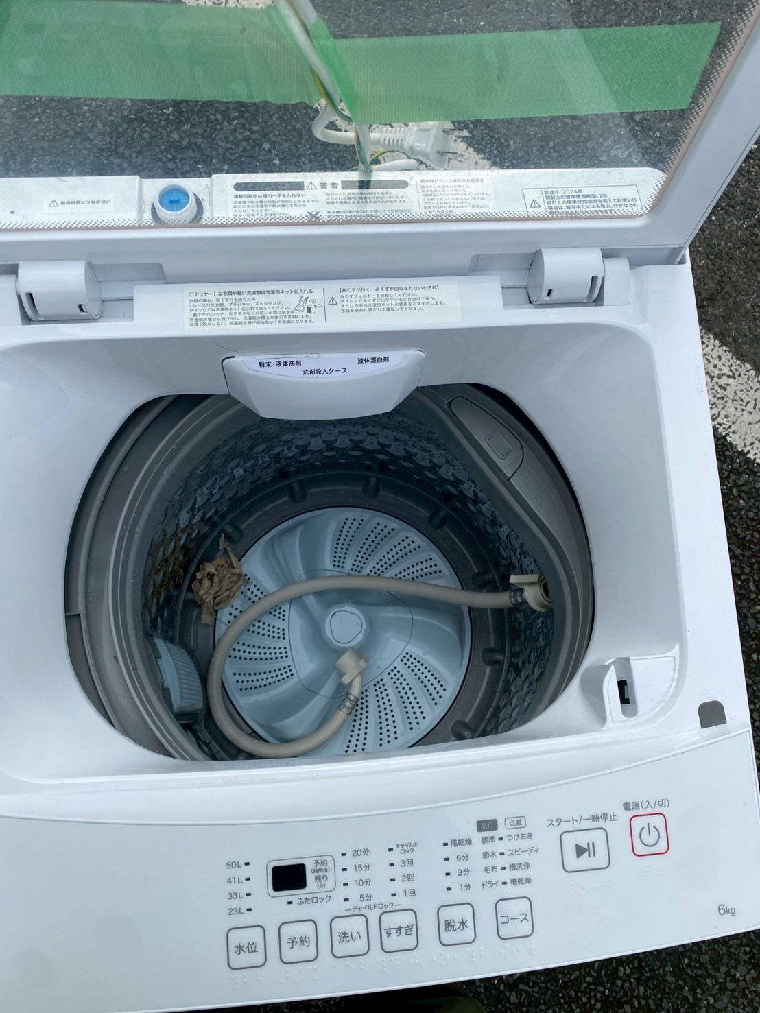 お預かりした洗濯機は外観に目立つ傷や凹みがほとんど見られないきれいな状態でした。槽内も使用感が少なく、カビや嫌な臭いも確認されませんでした。付属の給水ホースも揃っており、動作確認でも洗い・すすぎ・脱水すべて正常に作動していました。2024年製と年式も新しく、中古市場でも需要の高いコンディションです。