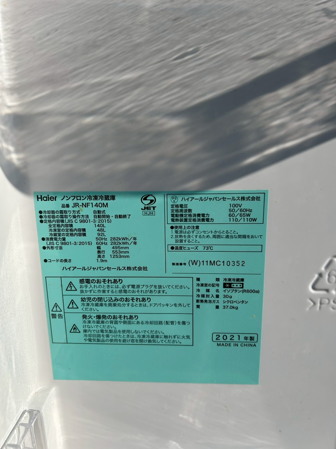埼玉県川口市へ Haier JR-NF140M 2021年製 美品のため高価査定しました
