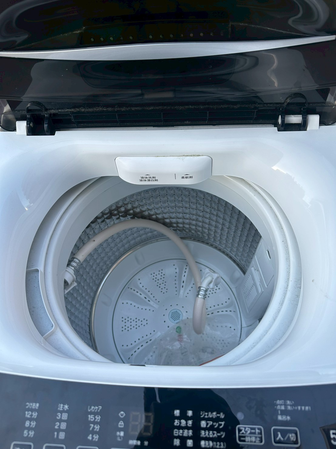 お預かりした洗濯機は外装やフタ部分に細かな擦り傷や使用に伴う汚れが見られる状態でした。槽内についても軽度の使用感はあるものの、大きなダメージや異臭はなく、給水・排水・洗濯・脱水などの基本動作は問題なく確認済みです。給水ホースや電源コードも付属しており、すぐに使用できる実用的な状態でした。
