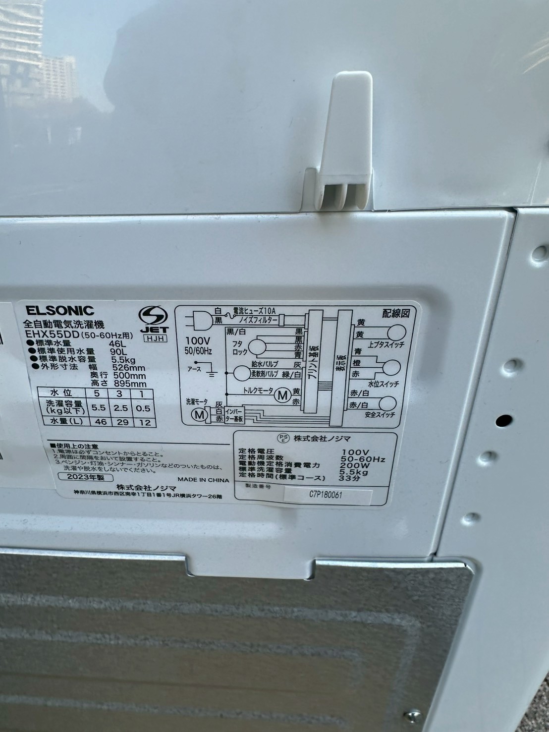 今回は三郷市にお住まいの30代女性(主婦・単身・賃貸アパート)より、ELSONIC 全自動電気洗濯機 EHX55DD(2023年製)を不用品買取にてご依頼いただきました。