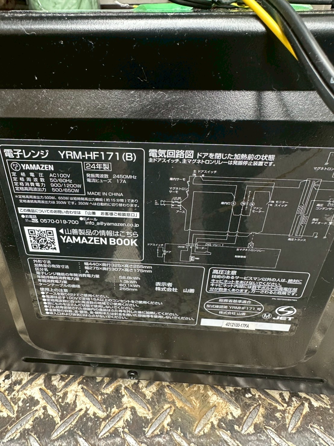 埼玉県三郷市にて山善 YRM-HF171(B) 電子レンジ 2024年製 使用感ありのため適正価格で買取いたしました